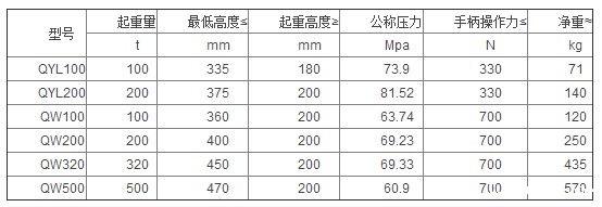 QYL型立式油压千斤顶参数:
