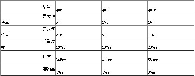 用途:适用于铁路道轨的辅设、桥梁安装、及车辆、设备、重物起重之用,具有结构简单、使用方便、安全可靠、多机并用等优点,是一种应用较广的起重工具。