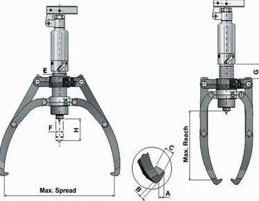 液压拉马主要由4大部分组成,液压泵、液压推动杆、螺杆和钩爪。听名字就不难猜测,液压拉马靠的是液压为动力来源进行做功的,但是有些人有些疑惑,液压做功为什么会有螺杆呢?螺杆的作用一般不都是用于机械做功的螺旋传动吗?