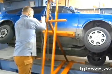 我们先把目光转向“千斤顶”本身上来,该千斤顶采用了的几根废弃的钢管拼劲焊接而成,其结构采用了一个倾角度的杠杆结构,而驱动方式更为新颖,利用的是手拉葫芦为驱动方式,通过拉动手拉葫芦的手链条来带动支架撬起整台车辆,看上去十分省力。那么私自制造千斤顶可行吗?